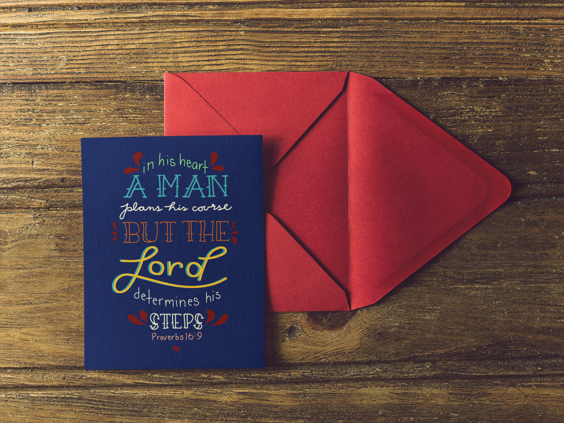 These handlettered Bible verses are the artwork featured on the front of a notecard set. Each one is handlettered using both Photoshop and Illustrator. Each card stays within the confines of the same seven-color color palette.